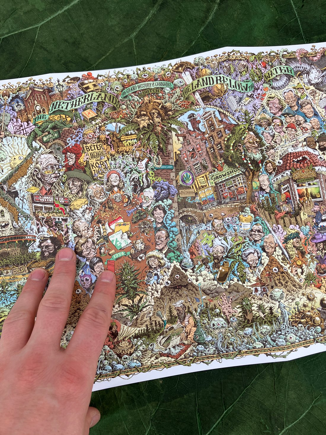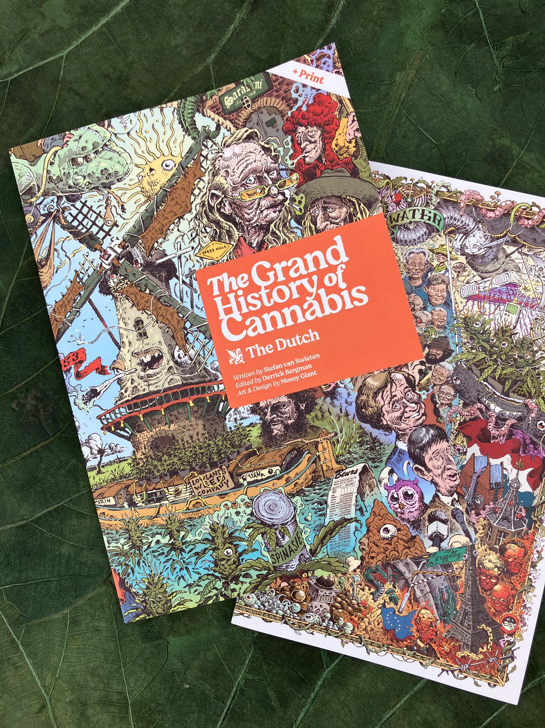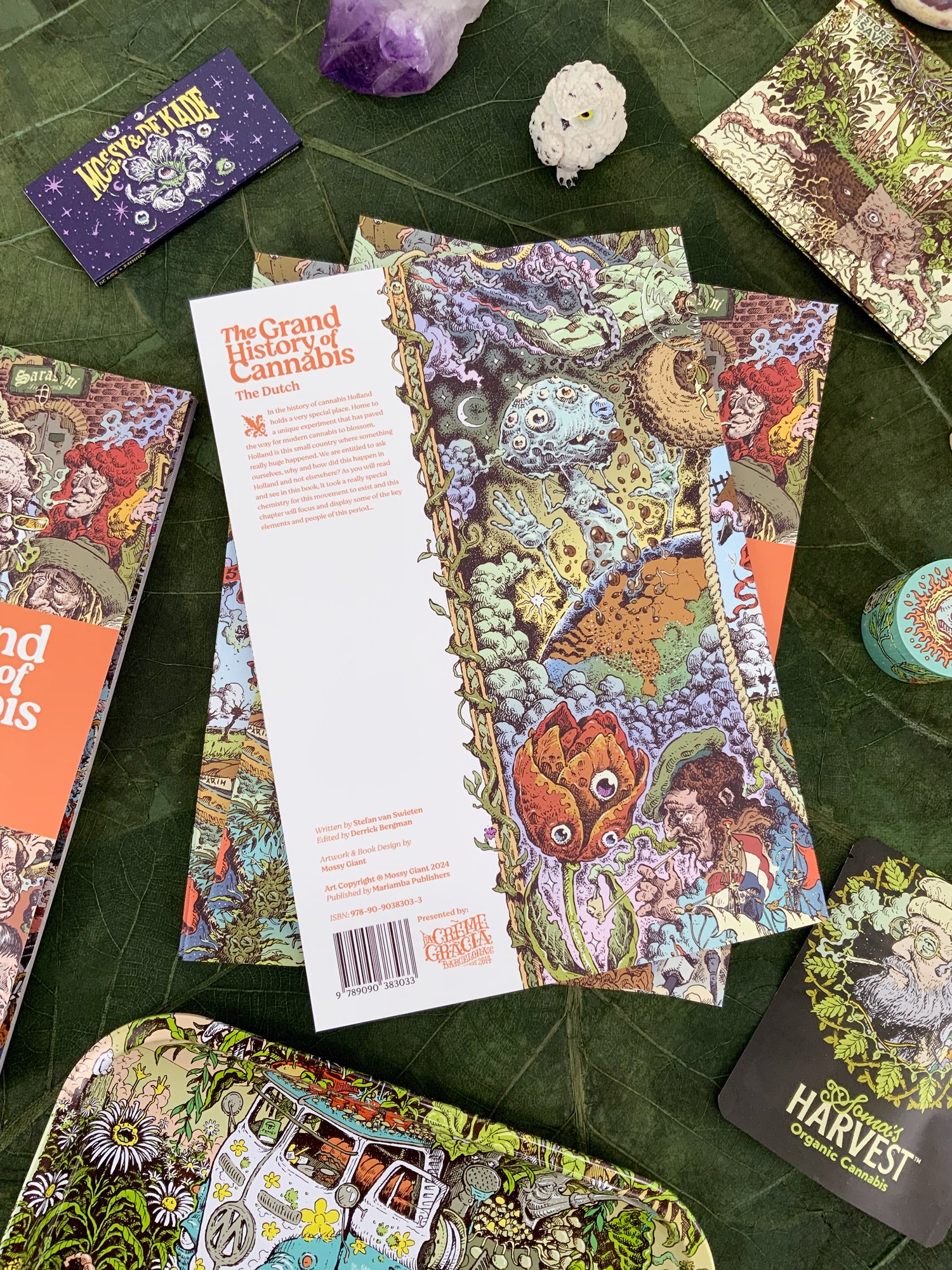 As part of the Grand History of cannabis project we made a book that tells the stories of all the first cannabis pioneers of Holland. The book is a clear map of what is depicted in the overall artwork. This Softcover A4 (29,7cm x 21cm) sized book counts 62 colourful pages and is rich in art and tale – a true must have for any cannabis and/or history enthousiast. The second edition is limited to 500 copies once they are gone we will go into another print production. The second edition is written in English.