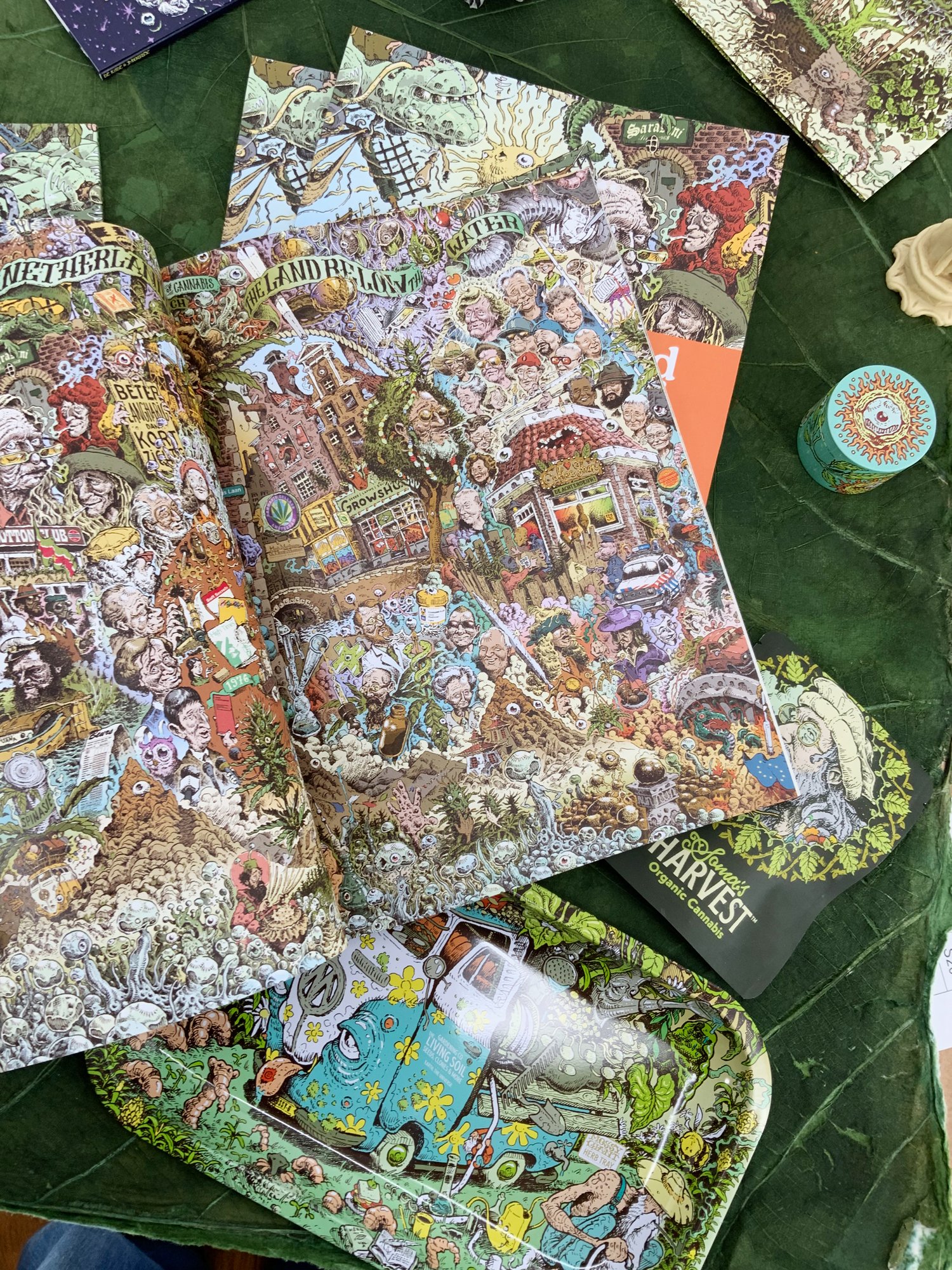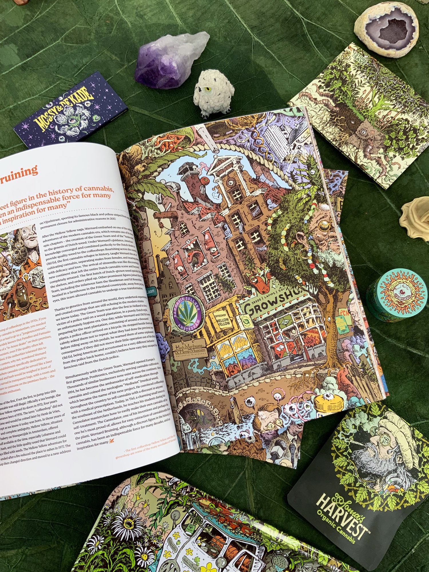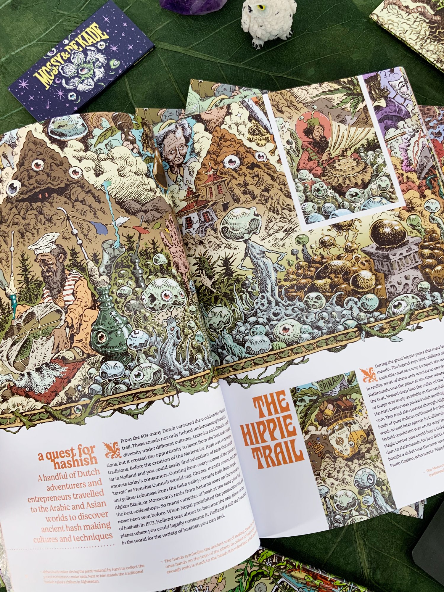 As part of the Grand History of cannabis project we made a book that tells the stories of all the first cannabis pioneers of Holland. The book is a clear map of what is depicted in the overall artwork. This Softcover A4 (29,7cm x 21cm) sized book counts 62 colourful pages and is rich in art and tale – a true must have for any cannabis and/or history enthousiast. The second edition is limited to 500 copies once they are gone we will go into another print production. The second edition is written in English.