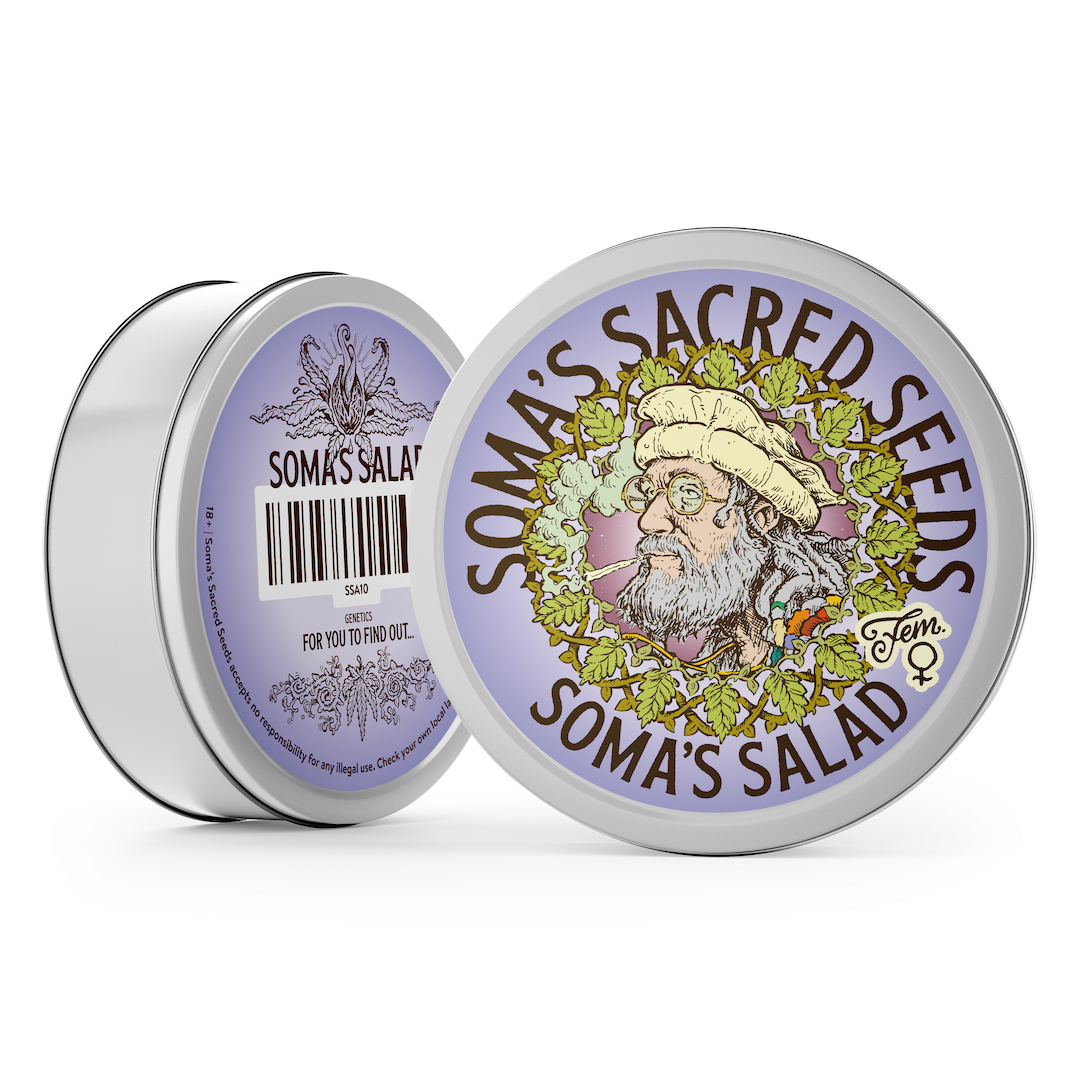 A lot people who met met me before know what is the favorite way that I love to smoke joints. I call it Soma’s Salad. Packaging that I am sending our seeds to you, is the smaller version of the box that I have had for 26 years now, since 1996. There were situations where I have lost this container, but it has always somehow come back to me. For me it is a magical container. After some time using it, you need to use fingernails to open it, since some amount of hash is sedimenting on the edges of the box. What do I do? I always have at least 3-4 genetics inside of it together, because my favorite kind a spliff to roll is what I call a Soma’s Salad. It is kind of making a lettuce eating salad, instead, this is making a Salad of different genetics. That way, your brain is hit in different places, have different, almost musical notes, you can call them. One genetic will hit one note, second one will hit another Note, third one next note, and before you know it, you have this cord of cannabis genetics that hits your soul and it up-lifts you. I am a firm believer that this place could become a heaven for us, our children, our grandchildren and even our great great grandchildren